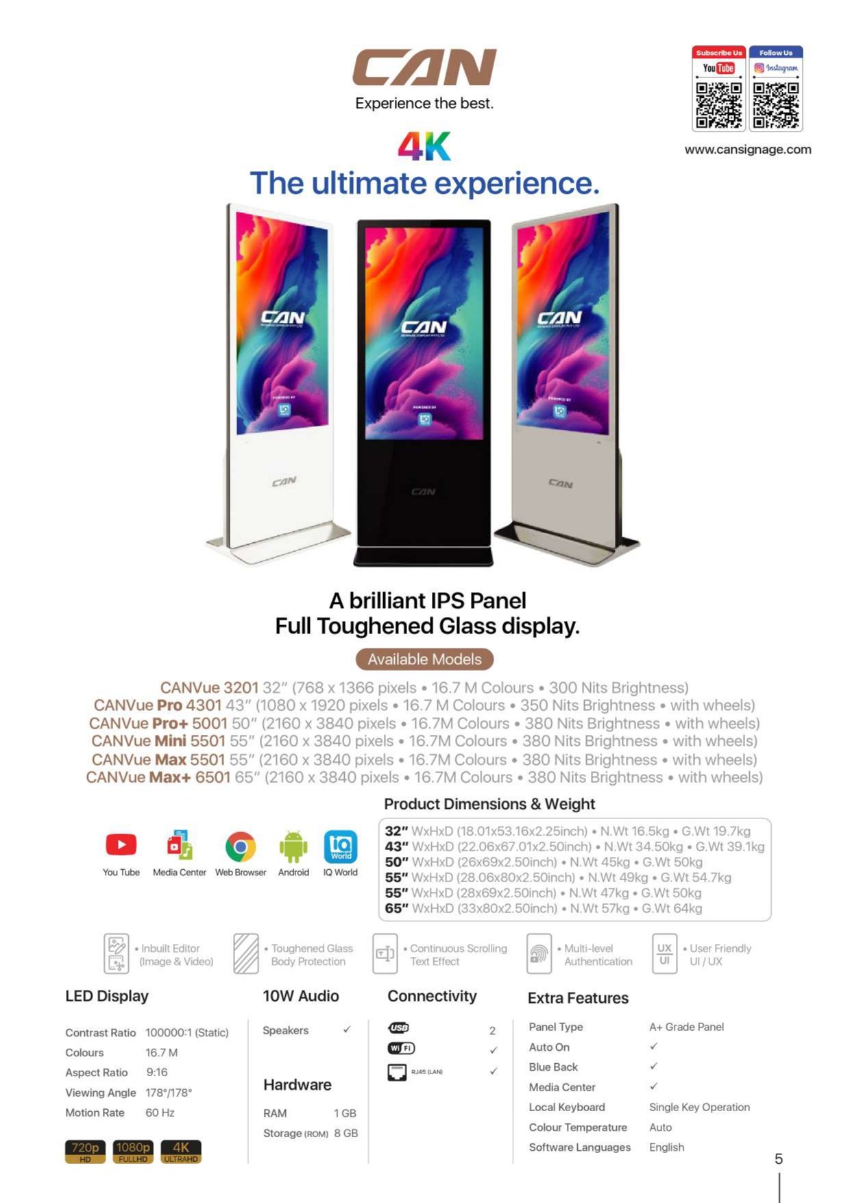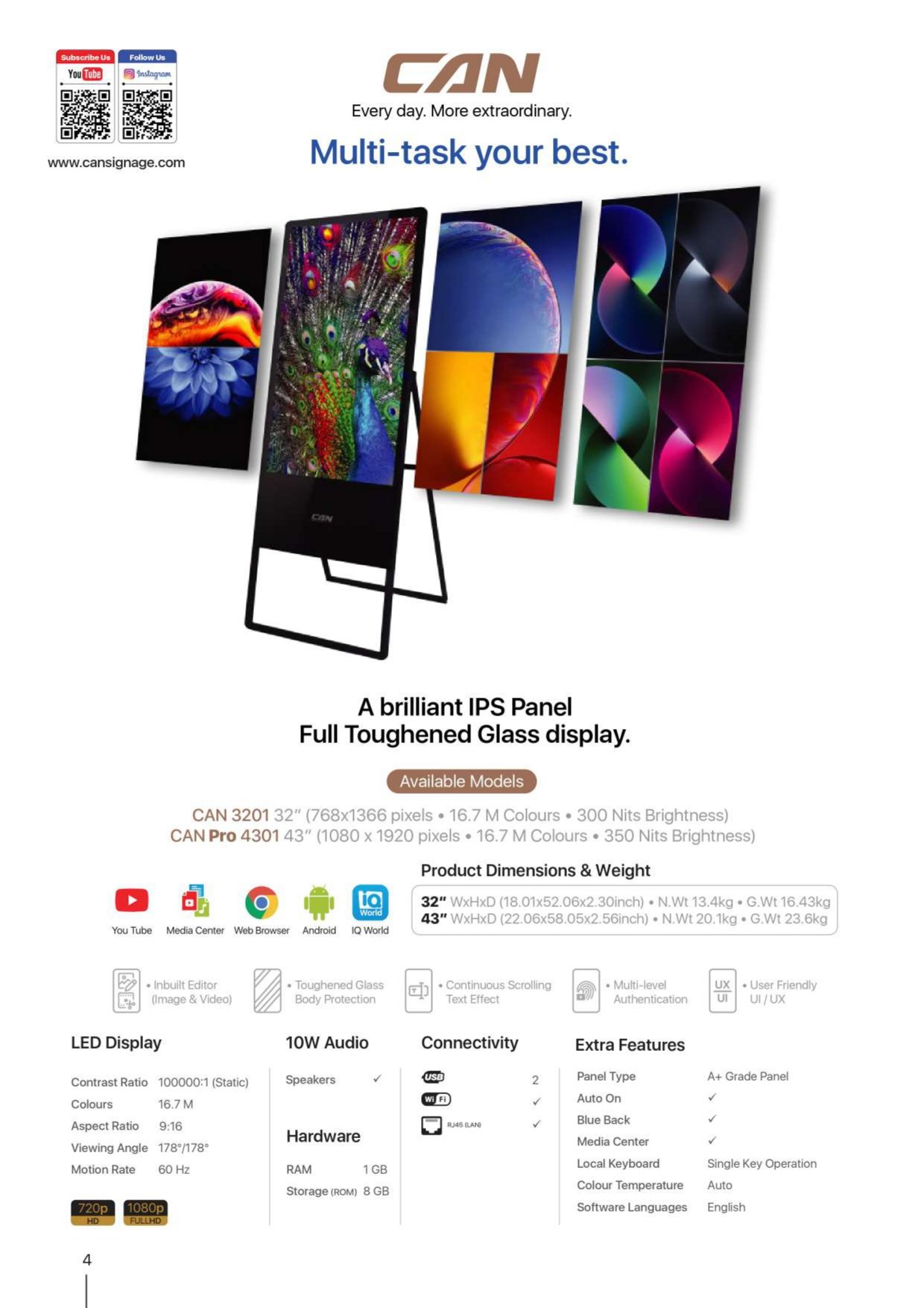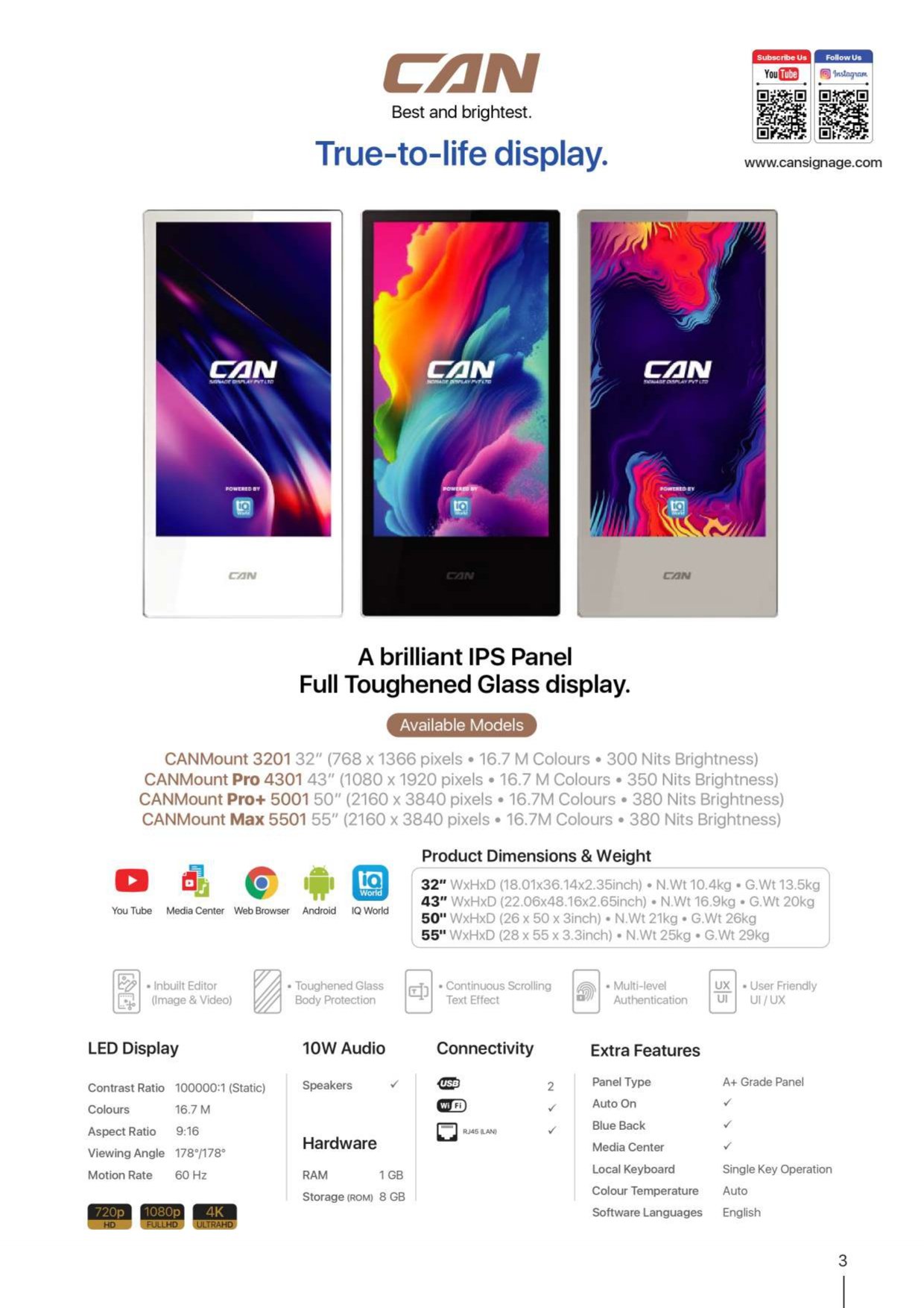 • Available in Sizes – 32″ / 43″ / 50″ / 55″