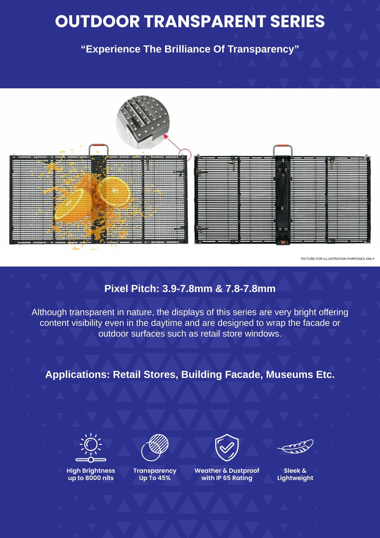 Vibrant LED screen offering vivid pictures & Videos