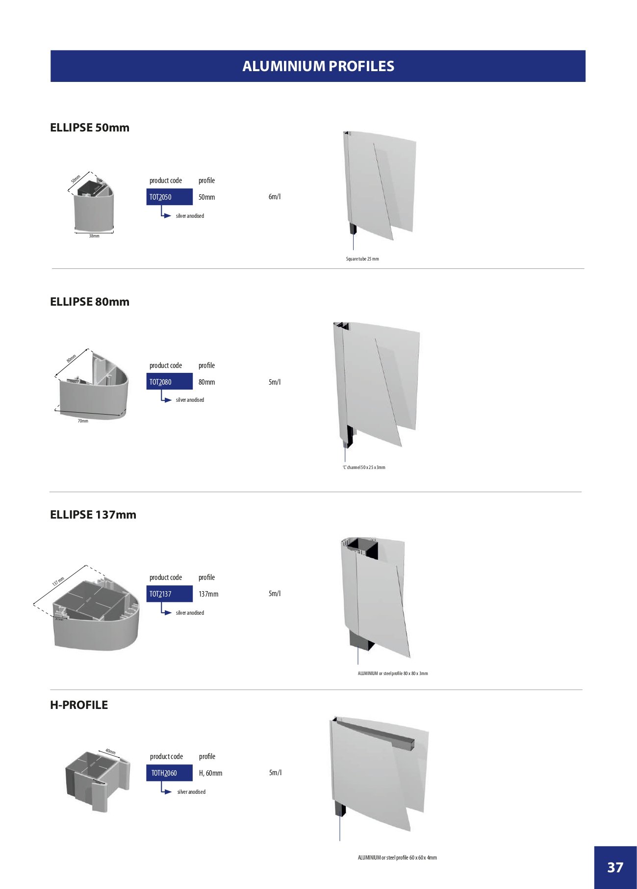 Types: ROUNDED, ELLIPTICAL & H-PROFILE